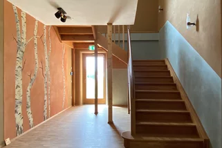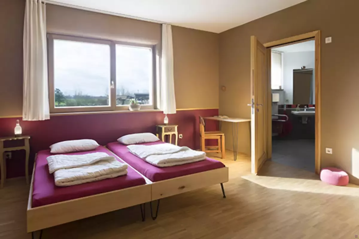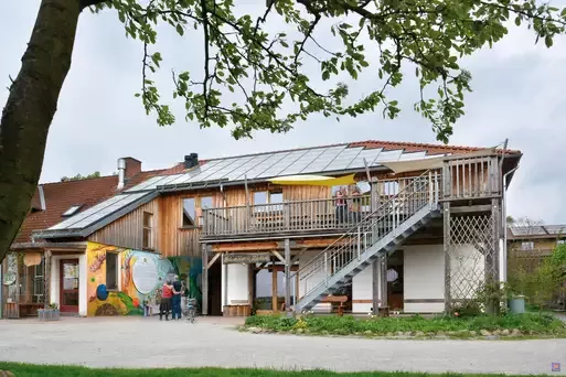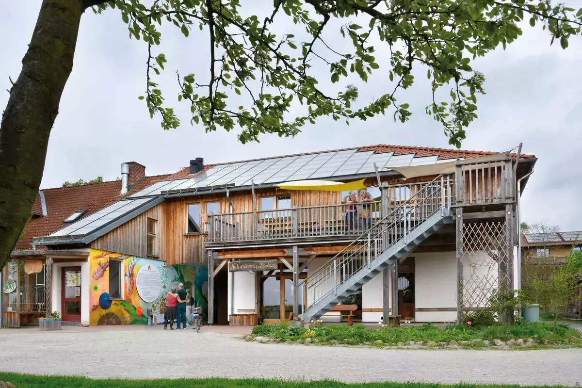 Unser neugebautes Gästehaus Strohtel bietet Ökokomfort in 14 Zimmern für bis zu 32 Personen. Weitere Unterkünfte für bis zu 20 Personen befinden sich in Bauwagen und Tiny-Houses auf dem Ökodorf-Gelände und im ökologisch sanierten Hofgebäude.