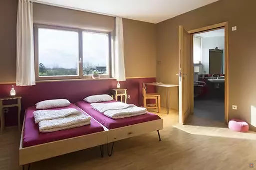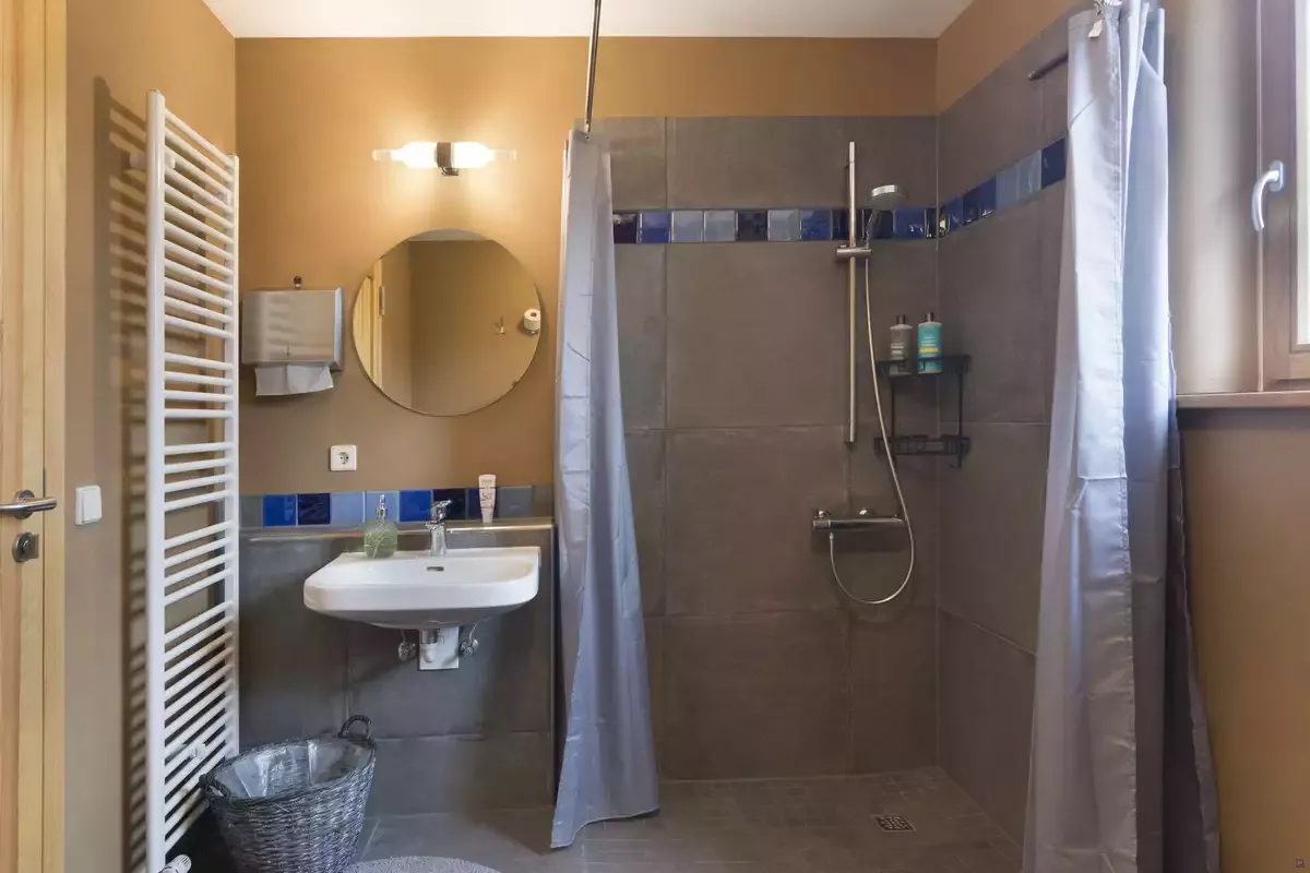 2 rollstuhlgerechte Doppelzimmer (auch als Einzelzimmer buchbar) mit eigenem Bad im Erdgeschoss – endlich angemessene Möglichkeiten für Rollstohlfahrer*innen!