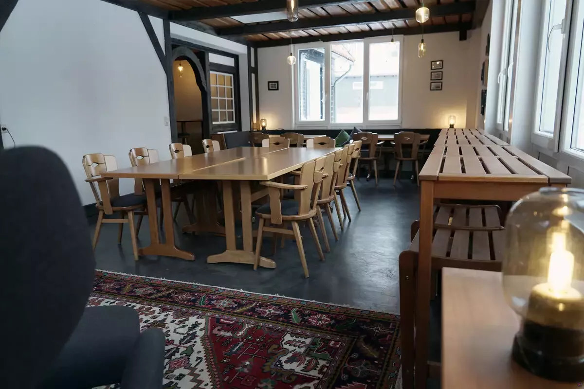 • ein zusätzlicher Veranstaltungsraum, mit Akustikdecke und Beamer, Flipchart und Tischkicker