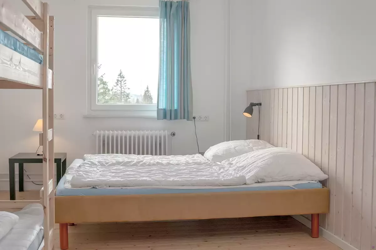 • 50 Betten verteilt auf 15 Doppel- und Mehrbettzimmer mit Holzfußboden
