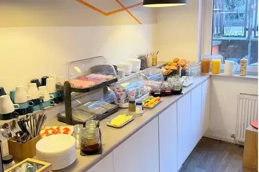 Das Frühstücksbüffet kostet 10,00 € pro Tag und Person.
