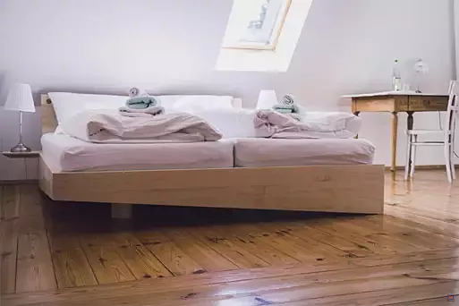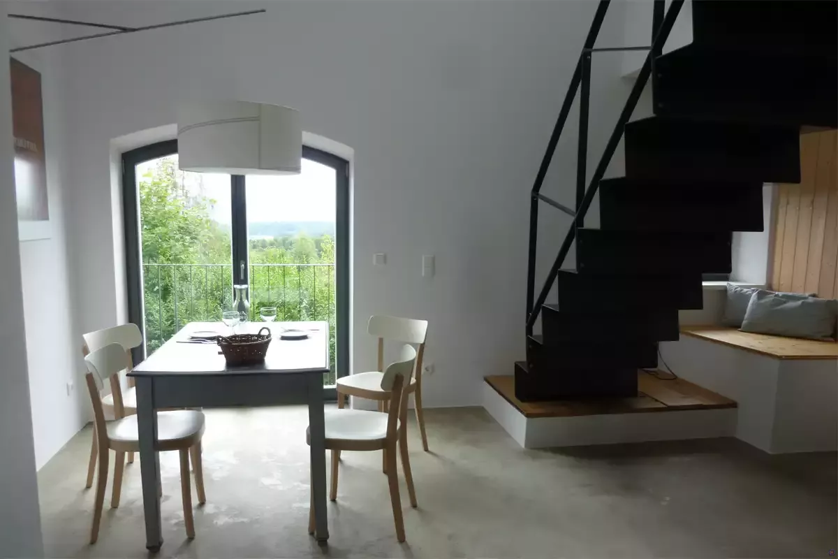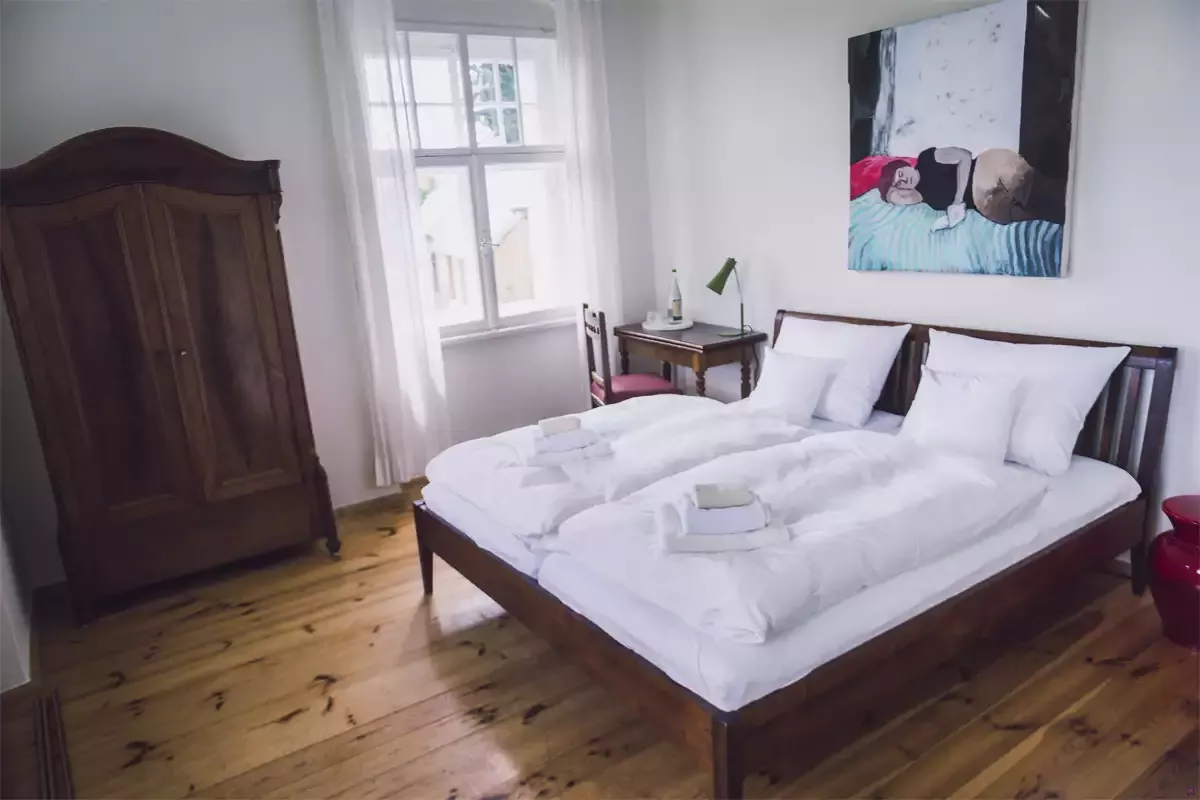 Spa-Bereich haben wir keinen, auch keine Fernseher auf den Zimmern, dafür knarzende Dielen, schiefe Türen und originale Kastenfenster. Die privilegierte Lage am Osthang des Höpflbergs eröffnet großartige Ausblicke auf die Bergkette des Böhmerwalds und die Täler des Mühlviertels. Das Haus und der weitläufige Garten laden ein zur Beobachtung der Natur, zur stillen Lektüre oder zum Kaffeeplausch.
