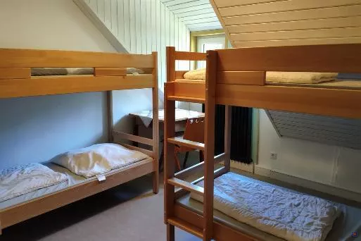 Zimmer mit Etagenbetten, Gemeinschaftsduschen, Teilweise nicht im Haus (z.B. Tannhai)