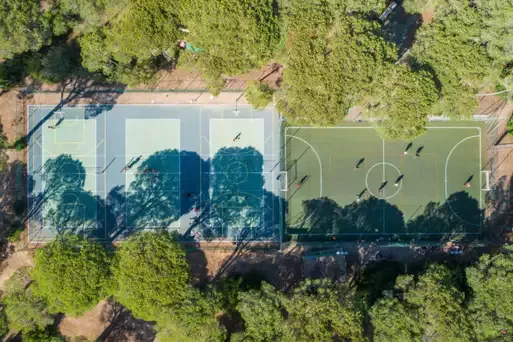| Sport: | Fahrräder, Basketball Court, Volleyballfeld, Beach-Volleyballfeld, Fußballplatz, Sportplatz, Bolzplatz, Tischtennisplatz, Klettergeräte, Seilgarten |