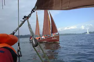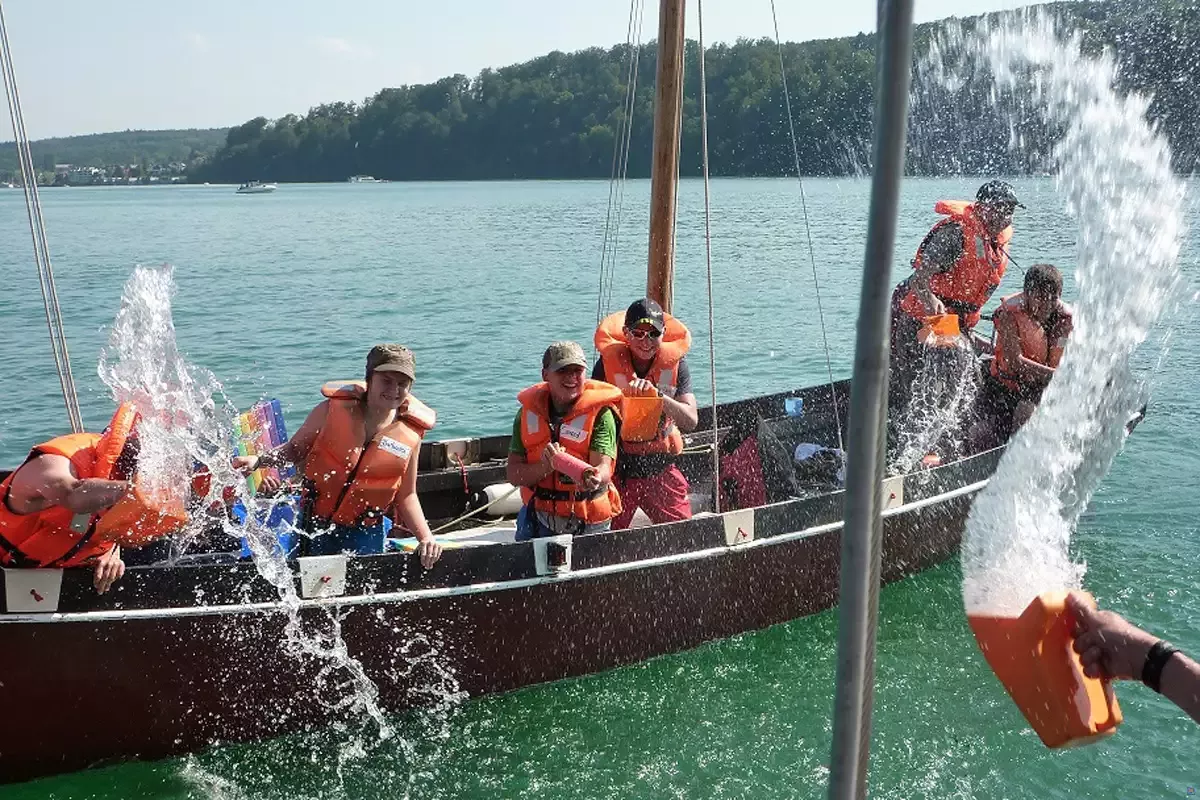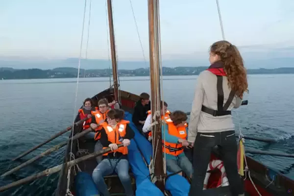 Wir können Ihnen unsere gut eingerichtete Zeltstadt direkt am Bodensee anbieten. Sie bietet Platz für bis zu 50 Teilnehmende. Von hier starten wir unsere Segeltouren mit 2-mastigen Holzkuttern auf dem Bodensee.