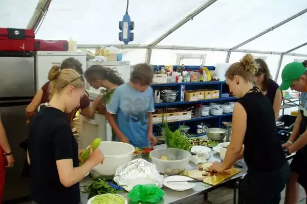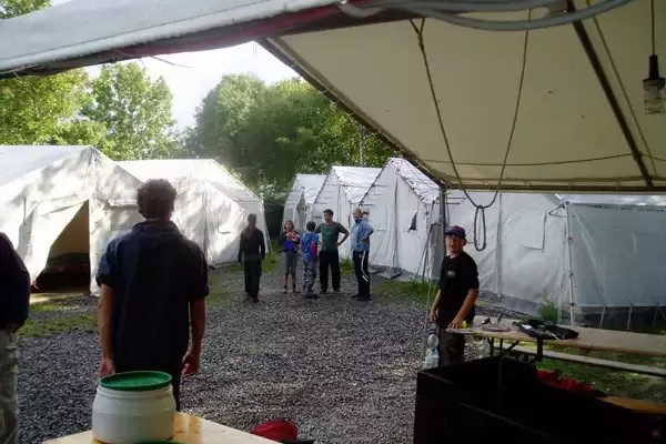 Platz für 50 Personen, Zeltverleih, fließend Wasser, Strom, Sanitäranlagen, Kochstelle, Dusche, Aufenthaltsraum