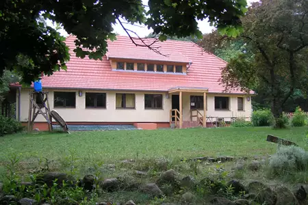 Der Niedere Fläming ist eine leicht hügelige Landschaft im südlichen Brandenburg. Dort, in der Nähe der Stadt Baruth/Mark, befindet sich im Ortsteil Ließen das Haus “Hoher Golm“, welches auf eine lange Tradition als Jugendherberge zurückblicken kann. Vor einigen Jahren wurde das Gästehaus unter ökologischen Gesichtspunkten saniert. Zum Haus gehört ein sehr großes und schönes Grundstück mit altem Baumbestand, welches in vollem Umfang zu nutzen ist.