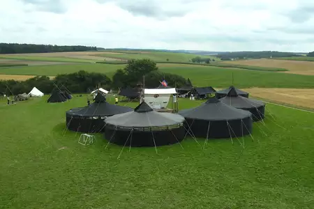 Platz für 400 Personen, fließend Wasser, Strom, Sanitäranlagen, Kochstelle, Dusche, Aufenthaltsraum