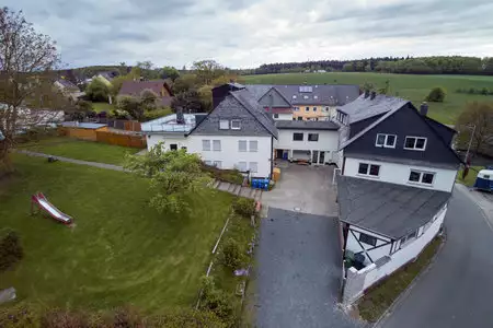 Unser Selbstversorgerhaus liegt am Rande des kleinen Dörfchens Kleinweidelbach (60 Einwohner), einem Stadtteil von Rheinböllen, im schönen Naturpark Soonwald-Nahe/Hunsrück. Kurze Anbindung an die BAB A 61. Gruppen aus den Regionen Köln/Bonn - Rhein-Main - Rhein-Neckar-Raum besuchen uns regelmässig. Eine besondere Abwechslung bietet die Zusammenarbeit mit dem Tierpark, Die Themen Tierparkschule und Waldpädagogik locckern willkommen auf. Hier bitten wir, gezielt bei uns nachzufragen. Erlebnisbad, Wildpark, Minigolf in Laufnähe. Freizeitmöglichkeiten gibt es reichlich im schönen Soonwald, dem Land des Schinderhannes, im wilden Hunsrück. im und ums Haus: großer Innenhof, überdachte Freifläche und Wiesengelände für Spiel und Spaß, Große Grillecke mit Schwenkgrill. Offener Kamin, Kicker, Tischtennisplatte.