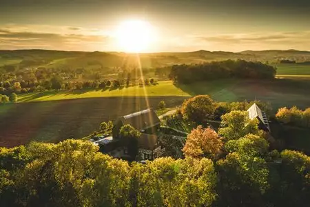 Auf dem Windmühlberg finden Sie fünf Häuser: das denkmalgeschützte Umgebindehaus von 1826 im Zentrum, dem Wintergarten mit Panoramablick über drei Länder, ein Seminarhaus mit den Räumen für fleißig Lernende, Speisesaal und Gaststube, zwei Gästehäuser mit 26 Zimmern für eine ruhige Nacht und ein kleines Haus mit Kreativwerkstatt Seminarräumen.