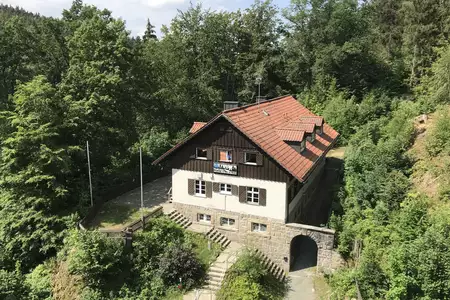 Idyllisch im Wald gelegen und doch mit Bezug zur Stadtnähe liegt die Pfadfinder-Blockhütte. Ein hügeliges Gelände befindet rings um die Blockhütte; Wanderwege führen direkt an der Pfadfinder-Blockhütte vorbei.