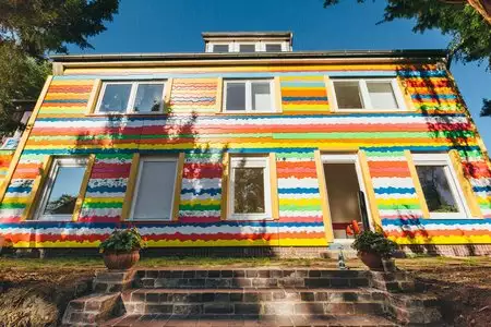 Unser Bildungshaus liegt an einer Stichstraße, eingerahmt und geschützt von Häusern und Bäumen rund um das großzügige Grundstück. Obwohl die Innenstadt zu Fuß nur 30 Minuten entfernt ist, bietet es den Flair einer kleinen grünen Oase. Gleich in der Nähe gibt es einen Bolzplatz und kleine Spaziergänge entlang eines Baches sind auch möglich. Fast vor der Haustür (1 Minute) gibt es eine Bushaltestelle mit Anbindung an die beiden Kasseler Bahnhöfe und in die Innenstadt im Takt von 10 - 15 Minuten.