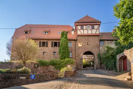 Die Jugendherberge ist Teil der vollständig erhaltenen mittelalterlichen Stadtmauer. Genießen Sie in Ruhe die pittoreske Dorfanlage. Komplett verkehrsberuhigt. Lieber etwas lauter? Platz zum Toben gibt es im kleinen Burgpark. Und auf den Wiesen rund um den Dilsberg. An lauen Sommerabenden lockt die Freilichtbühne an der Burgmauer. Kultur pur erleben Sie im Dilsberger Kommandantenhaus, dem Kulturzentrum des Rhein-Neckar-Kreises. Sehenswert ist auch der Blick von den der zinnenbewehrten Burgmauer. Auf der anderen Neckarseite erkennen Sie die vier Neckarsteinacher Burgen. Wie wäre es mit einer Wanderung? Am Fuß der Burgen hält auch das Ausflugsschiff nach Heidelberg. Alles einsteigen, das Schiff legt ab!