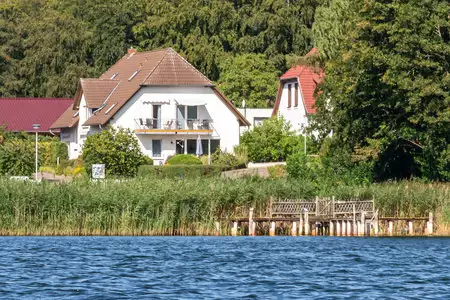 Das Strandhaus Malchow liegt an der Strandstraße, in unmittelbarer Nähe zum Fleesensee. Vom Haus haben Sie direkten Seeblick und Zugang zum Strand, wo Wassersportgeräte ins Wasser gelassen werden können. Das Haus ist ruhig und doch zentral gelegen. Bahnhof, Einkaufsmöglichkeiten und die Innenstadt von Malchow sind fußläufig innerhalb von 1-1,5 km erreichbar. Fahrradtouren und Wandern, Schwimmen, Bootfahren können Sie im direkten Umfeld. Das öffentliche Strandbad mit großer Wiese ist 300 m entfernt.