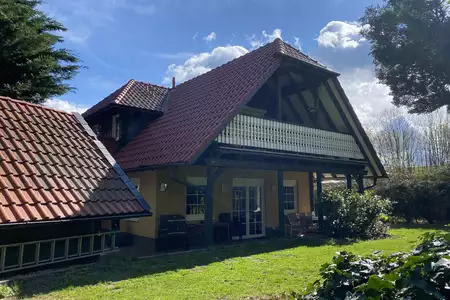 Das Haus verfügt über 5 Schlafzimmer mit insgesamt 13 Betten, einen Gemeinschaftsraum mit Küche sowie 2 Bäder und 2 zusätzlichen Gäste WC. Im Außenbereich befindeen sich ein Carport, zwei Balkone, eine überdachte Terrasse sowie ein überdachter Tischtennissplatz.