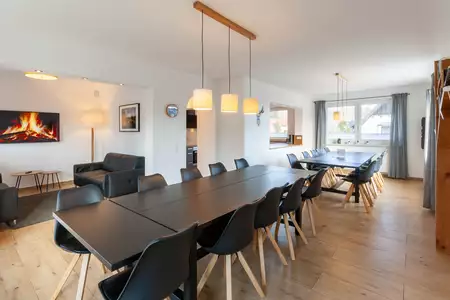 Das geräumige und geschmackvoll eingerichtete Ferienhaus bietet auf drei Ebenen Platz für bis zu 20 Personen.