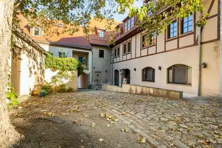 Das Gästehaus Geiseltalsee für bis zu 20 Personen (bis max. 25 Personen bei Mitreise von Kindern) befindet sich inmitten der Region Saale-Unstrut in der historischen Altstadt von Mücheln. Das Haus liegt ruhig und ist von Mauern umgeben. Der Hof und Garten sind für Sie exklusiv nutzbar und bieten eine private Atmosphäre.