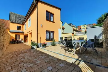 Auf 2 Etagen bietet das individuell und modern eingerichtete Ferienhaus Platz für bis zu 12 Personen. Es liegt in einer ruhigen Seitenstraße in der Nähe des Marktplatzes von Hettstedt. Einkaufsmöglichkeiten, Bäcker und Gaststätten sind fußläufig erreichbar. Hinter dem Haus befindet sich ein großer, mit Gartenmöbeln und Grill ausgestatteter Hof zur Alleinbenutzung. Auf einem angrenzenden, abgeschlossenem Hinterhof stehen 6 Parkplätze zur Verfügung.