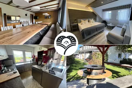 Die große, voll ausgestattete Gastro-Küche eignet sich perfekt für gemeinsames Kochen. Nach einem entspannten Saunagang könnt ihr euch im weitläufigen Garten mit überdachter Terrasse und Grillhütte treffen. Hier gibt es Raum für Erholung, Genuss und inspirierende Gespräche.
