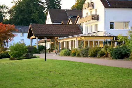 Unser Haupthaus ist in 4 Abschnitte aufgeteilt. In den Häusern Waldruhe, Talblick, Höhenblick und Bergfrieden finden Sie Einzel- Doppel und Mehrbettzimmer mit DU/WC und komfortabler Ausstattung. Außerdem verfügen wir in diesem Bereich über mehrere Seminarräume in unterschiedlicher Größe, div. Medientechnik und individuellen Bestuhlung. Unser großer Konferenzsaal ist ca. 200m² groß und bietet Platz für 300 Personen. Auch ist in diesem Gebäudelomplex unser Schwimmbad, unsere Sauna und unsere 3 Speiseräume untergebracht. Neben der Rezeption finden Sie hier auch unser "Café im Grünen" und unseren gut ausgestatteten Buchladen oder unser Poolbillard.