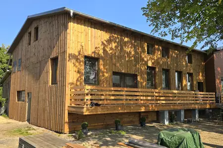 Diese vielseitige Unterkunft bietet Platz für 2 bis 9 Personen mit bis zu 4 Hunden und lädt dazu ein, Momente der Ruhe und Inspiration zu genießen. Ob Sie sich für einen erholsamen Rückzugsort zu zweit entscheiden oder ein kleines Retreat planen, hier finden Sie die perfekte Kulisse. Der helle und luftige Yogaraum bietet Raum für kreative Entfaltung und gemeinsames Lernen – ideal für Workshops, Seminare oder einfach nur zum Meditieren.