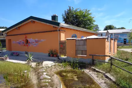 Gegenüber des Ferienhauses befindet sich das Kunsthaus mit großem und kleinem Seminarraum, einer Werkstattküche, einem 80m²-Yogaraum und einem Kreativraum. Die voll ausgestatteten Räume eignen sich für Schulungen, Seminare, Kurse, Familienfeiern und vielseitige Veranstaltungsmöglichkeiten. Dort befinden sich weitere Übernachtungsmöglichkeiten in 3 Pilgerzimmern für insgesamt 7 Gäste (auf Anfrage).