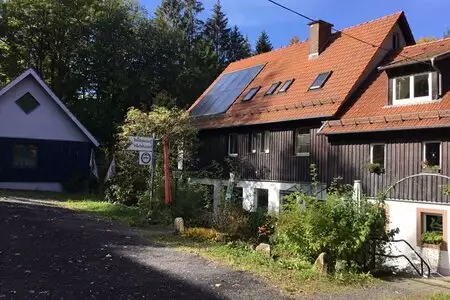Alleinlage am Wald, Ruhe, gute Luft, schöne Umgebung, Wanderwege, Badesee in der Nähe und im Winter Skimöglichkeiten. Feuer- und Grillplatz. Vollwert- und vegetarische Küche, überwiegend aus biologischem Anbau. Besonderheiten: kleine gemütliche Gaststätte, Spielmöglichkeiten für Kinder, große Wiese.