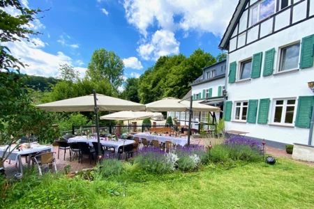 Ruhig und sonnig gelegen im Breibachtal, umgeben von Wiesen und Wald. Kein Verkehrslärm. In der Nähe von Köln (25 km) ist das Landgut bequem mit S-Bahn und Bus zuerreichen. Mit der Bahn: von Köln Hbf. oder Köln-Deutz mit S 11 bis Bergisch Gladbach, Buslinie 426 bis Breibacher Weg (1000 m). Mit dem Auto: Von Norden und Süden auf der A3 bis Kreuz Köln Ost, dann auf der A4 bis Ausfahrt Moitzfeld/Kürten, auf L286 bis Spitze rechts ab in Richtung Kürten bis Ortsteil Broich, dann links ab in Richtung Breibach. Entfernung bis zur Autobahn: 12 km