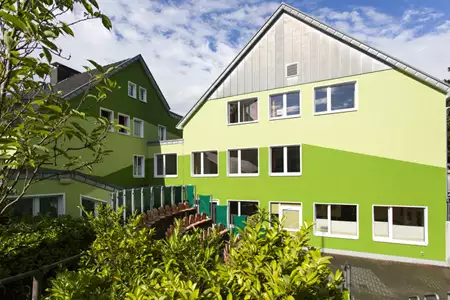 Vorhang auf ... und Bühne frei! – Mit attraktiven Programmangeboten in komfortabler, moderner Raumausstattung geht es in der Jugendherberge Bad Honnef äußerst lebhaft zu. Alles dreht sich rund um die Themen Tanz, Musik, Theater – vor allem für Schulklassen und Gruppen, die ihre Freizeit aktiv gestalten möchten. Eifrige Bühnenakteure können ihr Programm gleich auf mehreren Bühnen in Ruhe einstudieren und vor Publikum präsentieren. Für gemeinsame Treffen zwischendurch oder am Abend stehen große freundliche Aufenthaltsbereiche, ein gemütliches Bistro, ein kleiner Biergarten und eine geräumige Lounge zur Verfügung.