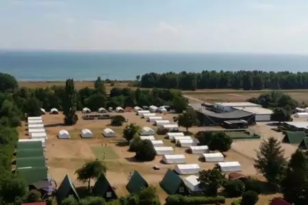 Das Camp liegt unmittelbar an der Ostsee nur 1 km vom Ostseebad Grömitz entfernt. Es kann in Nurdachhäusern mit bis zu 12 Personen oder in Zelten mit Raum für bis zu 9 Personen gewohnt werden.