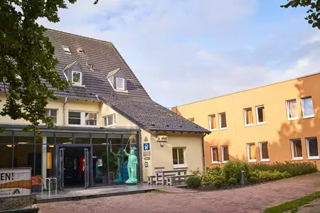 Fünf Tagesräume, 29 Familienzimmer, insgesamt 185 Betten, überwiegend in Vierbettzimmern, großes Außengelände, Grillmöglichkeit, Bistro, WLAN.