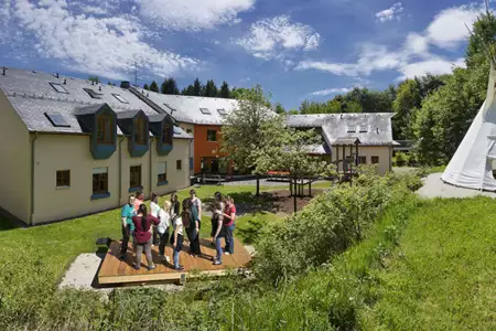 Jugendgästehaus mit 44 Betten und zusätzlich 5 Köhlerhütten mit je 5 Betten, Die Vermietung erfolgt nur an Schulen, Vereine, Verbände und Kommunen. Eine Nutzung durch Privatpersonen und -gruppen ist leider nicht möglich.