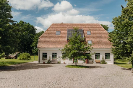 In wunderschöner grüner leicht hügeliger Landschaft auf einem großen Grundstück mitten im Wald gelegen, mit viel Platz zum Toben, ohne dass Sie irgendjemanden stören können. Viele Tiere in natürlicher Umgebung: Kraniche, Störche, Seeadler Hirsche...