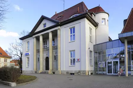 Unsere Jugendherberge befindet sich außerhalb des Stadtzentrums in einem ruhigen Villenviertel im Erfurter Süden. Die nächste Straßenbahnhaltestelle (Steigerstraße, Linie 6) ist 2 Gehminuten von der Jugendherberge entfernt und benötigt weniger als 10 Minuten zum Hauptbahnhof, Anger oder Domplatz, die zentralen Plätze Erfurts. Der Luisenpark und das Freibad Dreienbrunnen ganz in der Nähe der Jugendherberge laden zu entspannten Freizeiten im hektischen Stadtalltag ein.