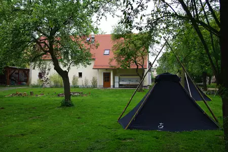 Platz für 50 Personen, Zeltverleih, fließend Wasser, Strom, Sanitäranlagen, Kochstelle, Dusche, Aufenthaltsraum