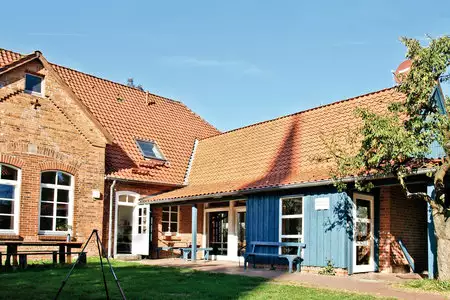 Die Unterkunft ist teilweise behindertengerecht: Gruppenräume, Küche, Einzelzimmer, Du/WC, Außenanlagen