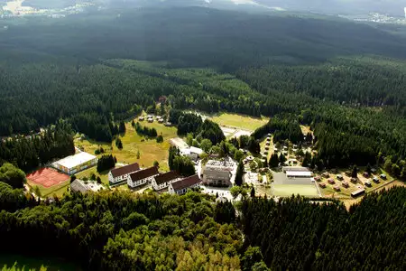 Zu jeder Jahreszeit bietet das KiEZ Waldpark Grünheide auf dem 18 ha großen grünen Areal moderne Unterkünfte, eine schmackhafte Vollpension sowie zahlreiche Sport- und Freizeitstätten im In- und Outdoorbereich an. Hier finden Sie ideale Bedingungen für erlebnisorientierte Klassenfahrten und beste Voraussetzungen für Trainings- und Probenlager. Rasenplatz, Kunstrasenplatz, Flutlicht für Sportplätze. Tennishalle, Sporthalle, Sauna, Bowlinganlage, Abenteuerspielplatz, Seminarräume.