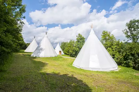 Bei weniger als 30 Personen, kann man den Zeltplatz mit einer Mindestpauschale von 255,00 € pro Nacht in Zelten oder für 360,00 € pro Nacht in den Tippi´s mieten.