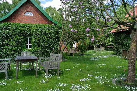 Unser Seminarhaus – ein altes Bauernhaus aus dem 19. Jahrhundert und ein Gästehaus – liegt am Rande des kleinen Dorfes Schlagsülsdorf in Nord-West-Mecklenburg, direkt an der Grenze zu Schleswig-Holstein, inmitten einer hügeligen Landschaft und ist umgeben von Feldern und Wäldern. Die kaum befahrene Dorfstraße fährt zum 2 km entfernten Thandorf, einem mustergültig wiederhergestellten Bauerndorf mit wunderschönen Fachwerkhäusern. Von dort sind es 12 km bis Ratzeburg und 20 km bis zur Hansestadt Lübeck. Die Ostsee ist eine gute halbe Stunde entfernt.