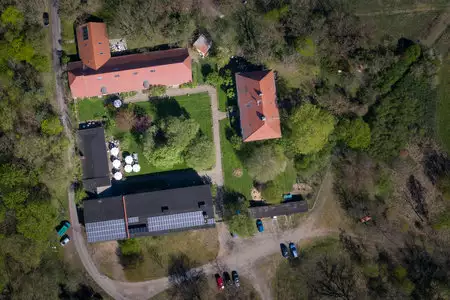 Die alte Backsteinscheune und der Fachwerkstall wurden zu Veranstaltungsräumen umfunktioniert. Ein moderner Gemeinschaftsraum bietet Raum für kleinere Runden bis zu 35 Personen.