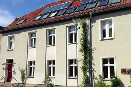 Wir verfügen über zwei hintereinanderliegende Häuser, der Altbau bietet auf drei Etagen Platz für 42 Personen, der Neubau für 30 Personen.